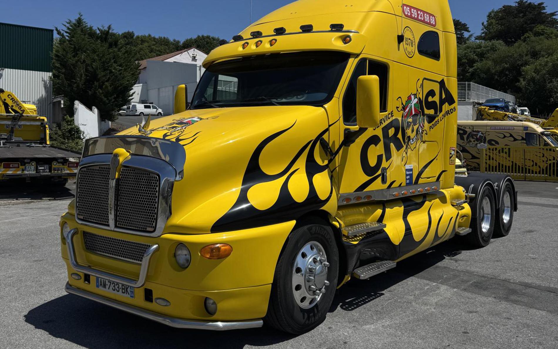 Tracteur Kenworth de 1999, 496441 km , clim , limiteur , tachy et mines ok. Moteur 6 cylindres en ligne caterpilar, double essieux tracteur , pompe hydraulique , grande cabine avec grand lit , frigo , table , placard …
