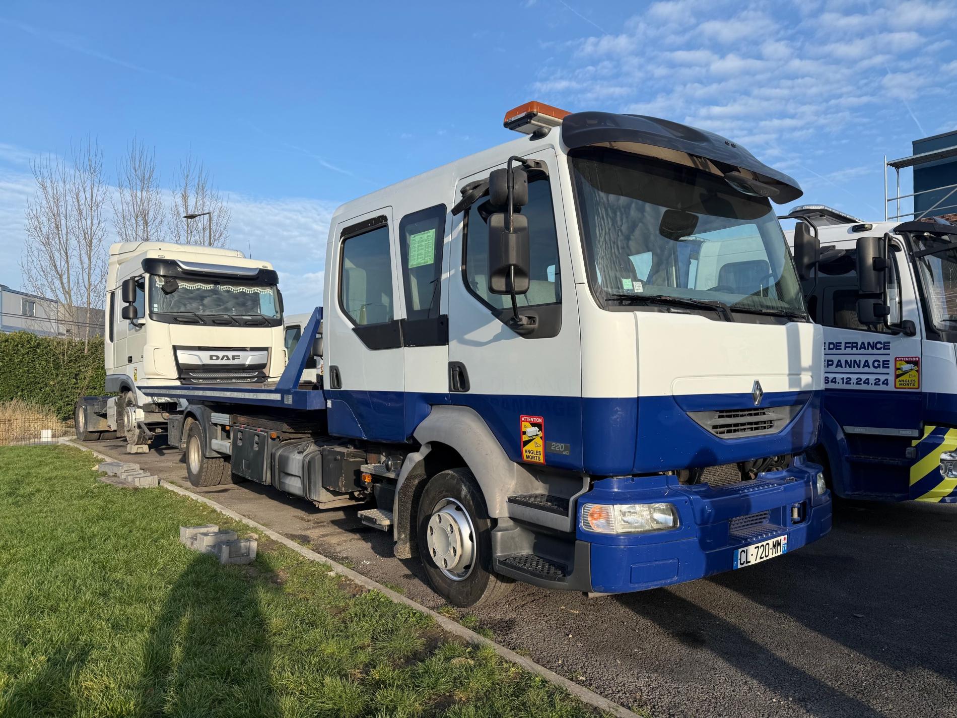 Renault Midlum 220DCI BVM Clim Suspension pneumatique Plateau CEV 6500x2400 Treuil 4T avec déplacement hydraulique + télécommande Panier CT OK DISPONIBLE